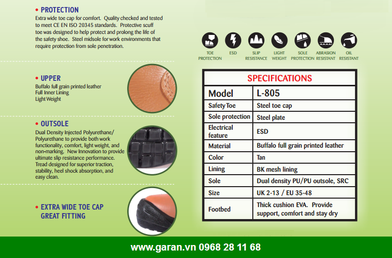 Trên đây chính là thông tin về sản phẩm ủng bảo hộ lao động từ Malaysia, King Power L805, những gợi ý nơi bán sản phẩm có giác cực sốc và tốt nhất trên thị trường. Rất mong, sự hỗ trợ giá tốt tại Garan với địa chỉ website bán hàng trực tuyến sẽ giúp bạn mua được đúng hàng chất lượng cao và bảo vệ bản thân tốt nhất, góp phần tạo sự an tâm cho gia đình và cho chính bản thân mình.