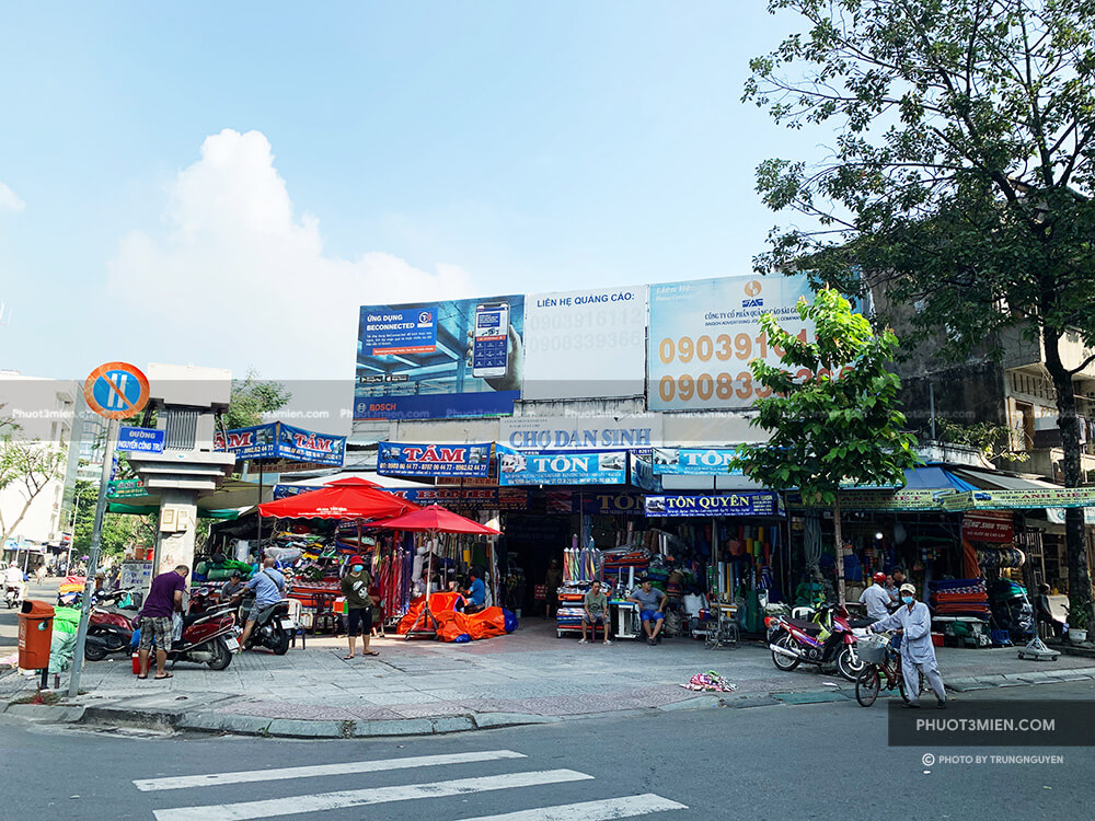 Theo địa lý, chợ Dân Sinh được đóng khung trong 4 con đường là Ký Con, Nguyễn Thái Bình, Yersin và Nguyễn Công Trứ quận 1. Vốn là khu ăn chơi cờ bạc đến năm 1954 mới đổi tên thành chợ Dân Sinh. Đất nước chưa mở cửa, kinh tế khó khăn hàng hóa khan hiếm nhưng nơi đây lại hoàn toàn ngược lại. Quần áo, vật dụng, phụ tùng cũ của xe vô cùng dồi dào. Từ năm 1990 trở đi thì nơi đây dần dần bị xâm lăng bới hàng mới, hàng cũ chỉ có tính trưng bày kỉ niệm chứ không còn giá trị sử dụng, giày bảo hộ cũng là một trong những số đó,...